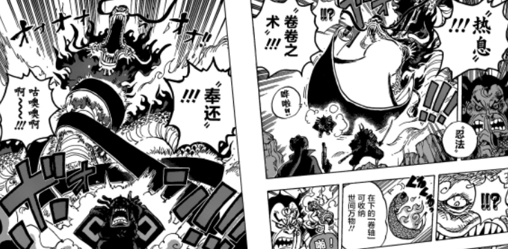 海贼王 雷藏也是恶魔果实能力者 使用卷卷之术吸收凯多龙息 卷轴